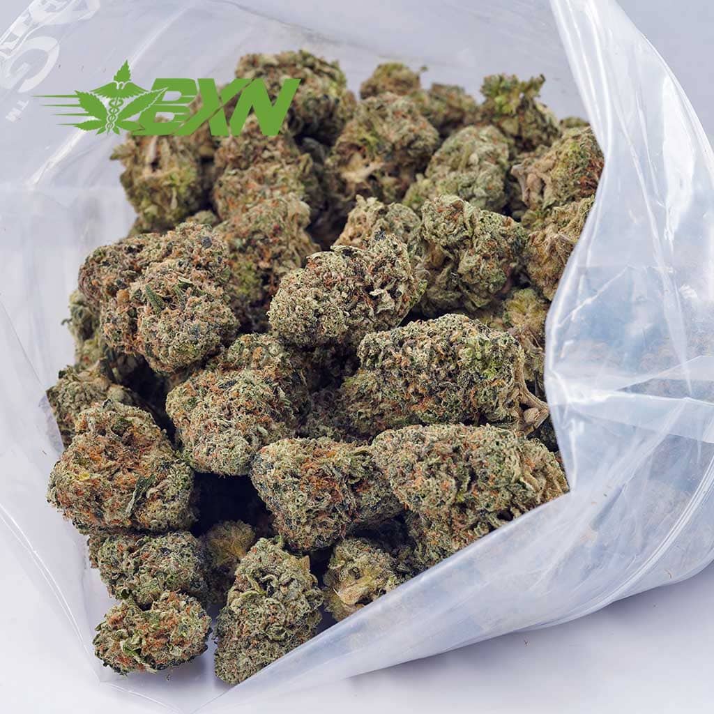 Wedding Crasher is a hybrid strain classic from the 1990s that is a direct descendant of the infamous Afghani strain. This bud is famous among the cannabis community for its insanely pungent smell reminiscent of a freshly dug up clove of garlic and a taste of tangy musk with a hint of spicy earthy garlic upon exhale. This unique aroma and flavor combined with a moderately high THC level between 23-25% gives Wedding Crasher a profile likeable to a variety of cannabis users. The Wedding Crasher high starts as an uplifting cerebral mind buzz that is surprisingly characteristic of a sativa. This buzz quickly fades into deep mental relaxation, leaving you spacey and hazy with introspective tendencies. As the high continues, a creeping body high will set in that leaves you couch-locked, lethargic, and unable to move for hours on end. Although this body high is stoney and sedative, you won’t be put to sleep unless you decidedly lie down and try to fall asleep. Because of these powerful but not completely overwhelming indica effects, Wedding Crasher is an ideal strain for treating chronic pain, muscle spasms, tremors, and insomnia or night terrors. These buds have small tight rock-hard pebble-shaped neon green nugs with sparse furry orange hairs and a visible dripping layer of sticky sweet resin.